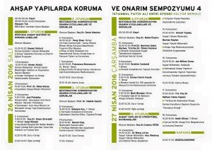 Ahşap Yapılarda Koruma ve Onarım Sempozyumu 4, 26-27 Nisan 2016 tarihleri arasından Fatih Ali Emiri Efendi Kültür Merkezi’nde gerçekleştirilecektir. Sempozyumda, dünyada ahşap sektörü ve koruma çabaları, projelendirme, restorasyon, konservasyon ve onarım uygulamaları ve sorunları, ahşap yapılar ve strüktürel davranışları gibi çeşitli başlıklar altında bilgi ve deneyimlerin paylaşılması amaçlanmaktadır.